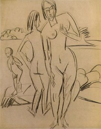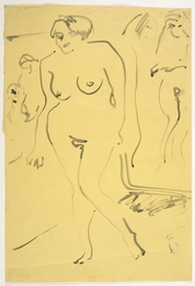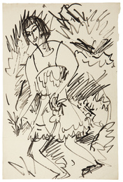Nachweislich beginnt bereits im frühen Alter von drei Jahren zu zeichnen. Die Familie zieht mehrfach um: Frankfurt am Main, Perlen bei Luzern, Chemnitz. Mit zwanzig Jahren entsteht Kirchners erstes umfassendes Skizzenbuch, dem im Laufe der Zeit rum einhundertachtzig weitere folgen sollten. Im Jahr 1901 beginnt Kirchner sein Architekturstudium an der Technischen Universität Dresden, das er 1905 erfolgreich abschließt. In Dresden macht Kirchner Bekanntschaft mit Fritz Bleyl, Erich Heckel und Karl Schmidt-Rottluff, mit denen er am 7. Juni 1905 die Künstlergruppe „Brücke“ gründet. Im selben Jahr arbeitet er an den „Viertelstundenakten“. Ein Jahr später schließen sich auch Pechstein und Nolde den „Brücke“-Malern an. Im Sommer 1908 reist Kircher erstmals nach Fehmarn um an der deutschen Küste zu zeichnen und zu malen und so der Enge Dresdens zu entfliehen. Im Oktober 1911 verlässt Kirchner Dresden, um in Berlin seine beruflichen Möglichkeiten zu verbessern. 1912 begegnet er Erna Schilling, die als seine Lebensgefährtin bei ihm bleibt. Im Jahr 1915 wir er zum Militärdienst eingezogen, bricht er nach kurzer Zeit körperlich und seelisch zusammen. Nach einigen Aufenthalten im Sanatorium, reist er 1917 nach Davos, um dort Genesung zu suchen. Er bleibt in der Schweiz und lässt sich nahe Davos in Frauenkirch im Haus „In den Lärchen“ nieder. Im Jahr 1926 reist er erstmals wieder nach Deutschland, um seine Mutter in Chemnitz sowie Fränzi Fehrmann in Dresden zu besuchen. Wenige Jahre nach der Machtergreifung der Nationalsozialisten werden 1937 über 600 seiner Werke als „entartet“ gebrandmarkt und aus deutschen Museen entfernt. Nicht zuletzt deshalb wählt Kirchner am 15. Juni 1938 im Alter von achtundfünfzig Jahren den Freitod. Ernst Ludwig Kirchner zählt mit seinen Zeichnungen und Gemälden zu wichtigsten Vertretern des deutschen Expressionismus, dessen Werke regelmäßig in nationalen und internationalen Ausstellungen präsentiert werden. Erst 2019 zeigte die Neue Galerie New York eine Große Solo-Ausstellung des Künstlers, die sich mit der wegweisenden Bedeutung Kirchners für die Entwicklung des deutschen Expressionismus befasste. Werke von Ernst Ludwig Kirchner finden sich heut in zahlreichen Museen und namhaften Sammlungen weltweit, u.a. dem MoMa in New York oder der Pinakothek der Moderne in München.