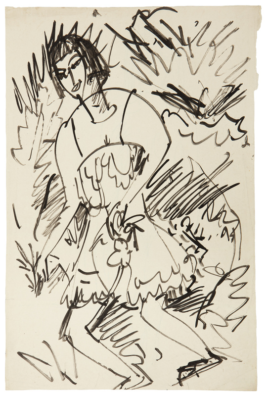 verso: Stehender Frauenakt, um 1924, Tusche auf Papier