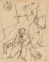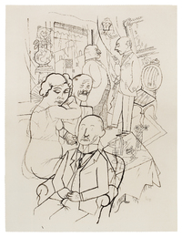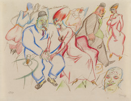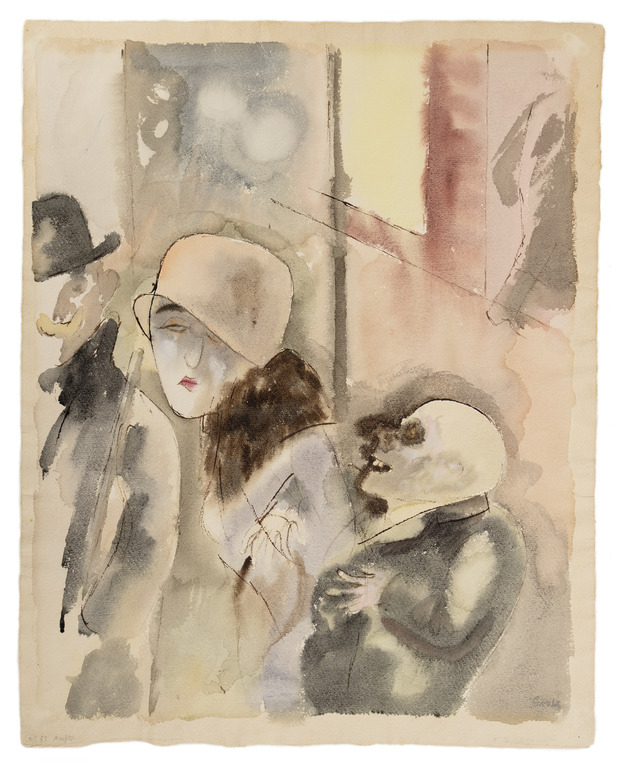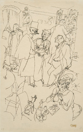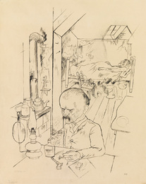 Der sozialkritische Maler und Grafiker Georg Ehrenfried Grosz wird am 26. Juli 1893 in Berlin geboren. Nach seinem Studium an der Kunstakademie in Dresden sowie der Kunstgewerbeschule in Berlin reist er 1913 nach Paris und besucht die Académie Colarossi. In der Hoffnung einem Einsatz an der Front zu entgehen, meldet sich Grosz, der körperliche Gewalt verabscheute, 1914 freiwillig für den Kriegsdienst. Nach kurzer Tätigkeit wird er bereits im darauffolgenden Jahr als untauglich wieder entlassen. Die während dieser Zeit gesammelten Erfahrungen prägen ihn jedoch stark und beeinflussen sein künstlerisches Schaffen nachhaltig.
