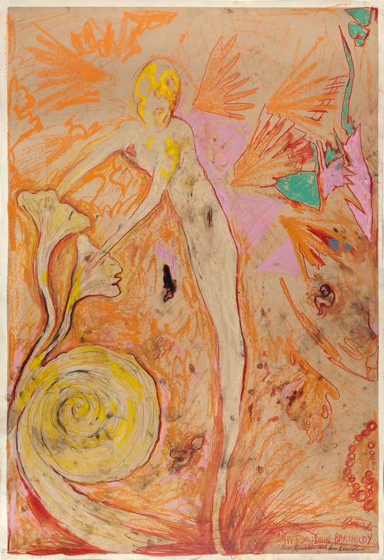 Bleistift und Ölkreide auf getöntem Karton